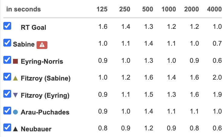 I also aimed for a little lower reverberation times than the 1.3s according to SIA181, since the acoustics in rehearsal rooms are most the time a little less reverberant to be able to hear out even the smallest mistakes.